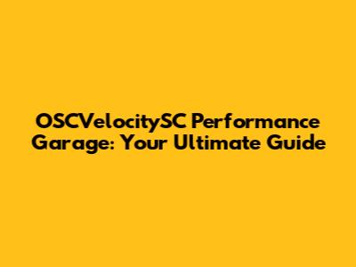 OSCVelocitySC Performance Garage: Your Ultimate Guide