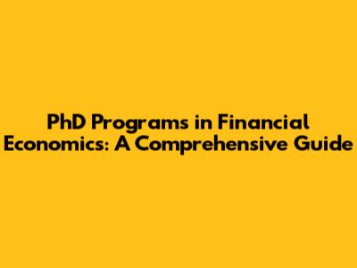 PhD Programs In Financial Economics: A Comprehensive Guide