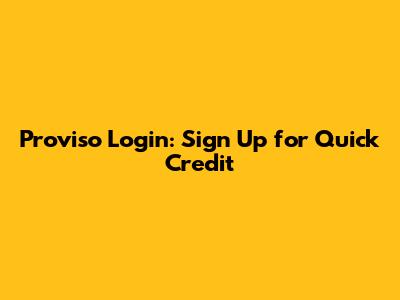 Proviso Login: Sign Up For Quick Credit