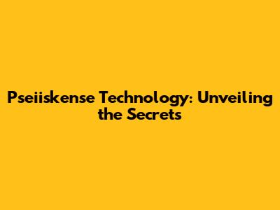 Pseiiskense Technology: Unveiling The Secrets