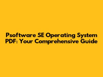 Psoftware SE Operating System PDF: Your Comprehensive Guide