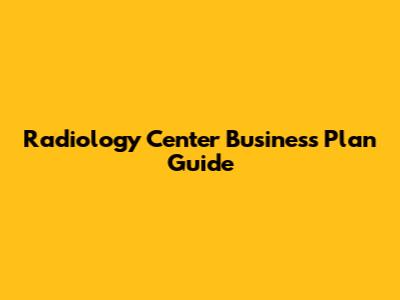 Radiology Center Business Plan Guide