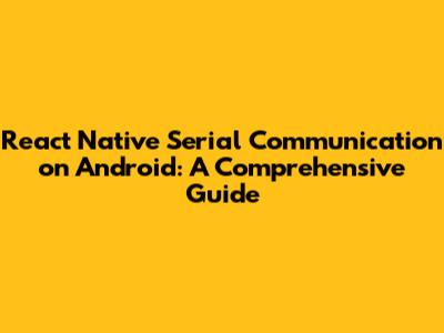 React Native Serial Communication On Android: A Comprehensive Guide