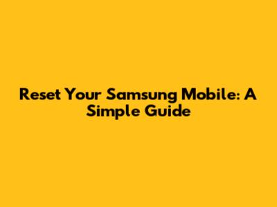 Reset Your Samsung Mobile: A Simple Guide