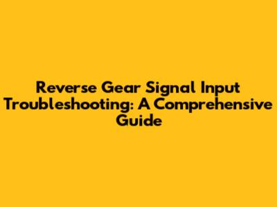 Reverse Gear Signal Input Troubleshooting: A Comprehensive Guide