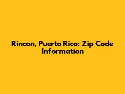 Rincon, Puerto Rico: Zip Code Information