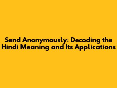 Send Anonymously: Understanding The Hindi Meaning & Uses