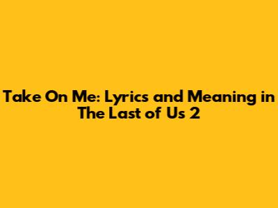 Hey guys! Ever get a song stuck in your head, especially when it's tied to an incredibly moving moment in a game? Well, that's exactly what happened to me when I experienced the use of "Take On Me" in The Last of Us Part II. This iconic track by a-ha isn't just a catchy tune; it's a key part of one of the game's most memorable scenes. This article is your deep dive into the lyrics of "Take On Me," exploring their connection to the game's narrative and, of course, the emotional impact it had on us players. We'll break down the lyrics line by line, look at how the song enhances the scene, and discuss why this musical choice was so darn effective. Buckle up, because we're about to explore the heart of a-ha and the powerful storytelling of The Last of Us Part II! It’s going to be a fun ride through the meaning of this amazing song.
