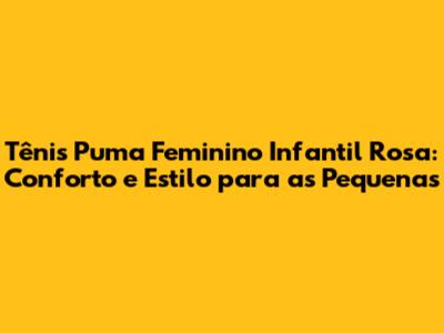 Tênis Puma Infantil Rosa Para Meninas: Conforto E Estilo!