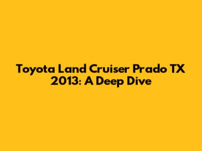 Hey guys! Let's dive deep into the Toyota Land Cruiser Prado TX 2013. This SUV isn't just a vehicle; it's a statement. Known for its ruggedness, reliability, and surprising comfort, the Prado TX 2013 is a popular choice for both off-road enthusiasts and city dwellers alike. In this article, we’ll explore everything you need to know about this beast, from its specifications and features to its performance and overall value.