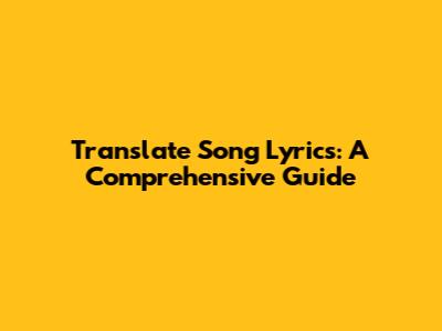 Translate Song Lyrics: A Comprehensive Guide