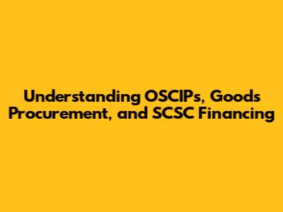 Understanding OSCIPs, Goods Procurement, And SCSC Financing