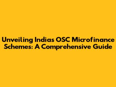 Unveiling India's OSC Microfinance Schemes: A Comprehensive Guide