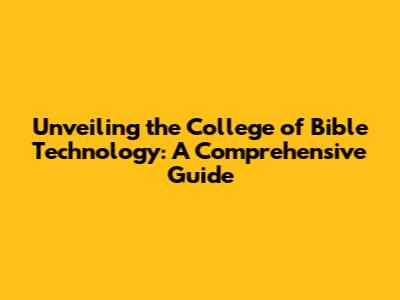Unveiling The College Of Bible Technology: A Comprehensive Guide