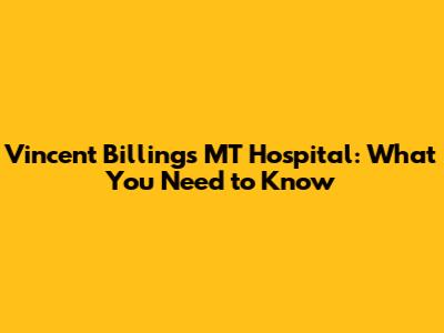 Vincent Billings MT Hospital: What You Need To Know