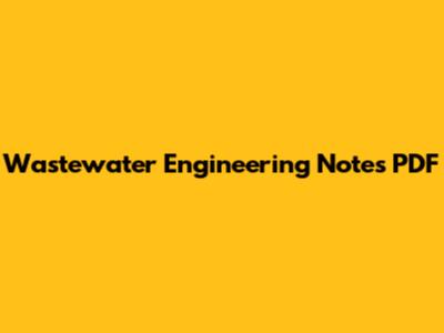 Wastewater Engineering Notes PDF
