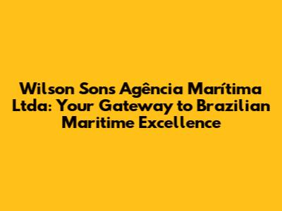 Hey guys! Ever wondered about navigating the complexities of maritime operations in Brazil? Let's dive into Wilson Sons AgĂȘncia MarĂ­tima Ltda, a key player ensuring smooth sailing in the Brazilian maritime sector. This isn't just another company; it's a vital link connecting global trade with Brazil's extensive coastline.